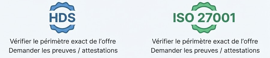 | 🛡️ Conformité | Mise en avant : hebergeur hds + iso 27001 cloud (à confirmer au périmètre) | Conformité via cadres AWS + cadrage interne |