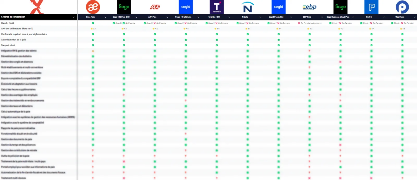 ✔ Analyse des fonctionnalités avancées : automatisation, conformité, intégration RH…