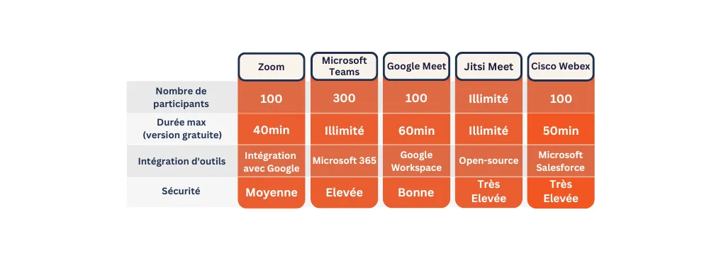 - Grandes entreprises : Cisco Webex est recommandé pour ses fonctionnalités robustes et sa sécurité renforcée. Microsoft Teams reste une alternative fiable pour les environnements Microsoft.