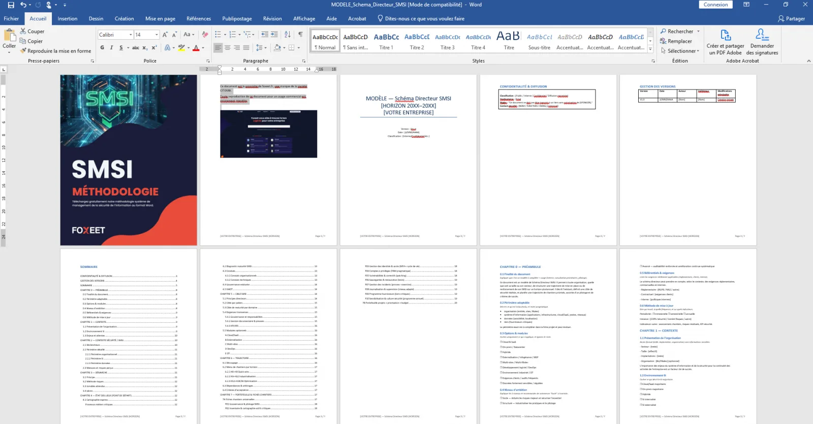 [Lien de téléchargement fictif : Télécharger le Modèle Schéma Directeur SMSI (DOCX)] (Note : Dans votre contexte réel, insérez ici le bouton vers la page de téléchargement du document Foxeet).