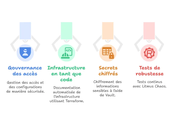 - Une gestion fine des secrets avec Vault by HashiCorp, intégrée aux chaînes de build.